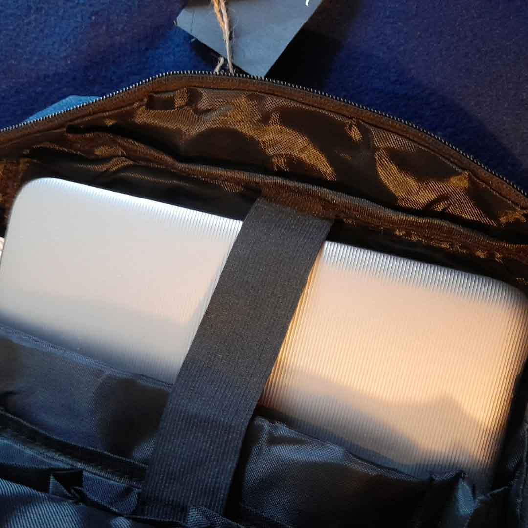 Buen producto: me gusta el estilo de la tela (para comprobar la impermeabilidad, pero está plastificada por dentro y tengo confianza), bien hecha, tiene un aspecto resistente y mi portátil (de 17 pulgadas) se ajusta perfectamente. Bonita toma de carga a la que conectar una batería externa en su interior. En el interior hay muchos bolsillos y compartimentos en los que guardar cables, enchufes, baterías y minutos¡ Esta es sin duda una compra inteligente! ¡Recomendado!