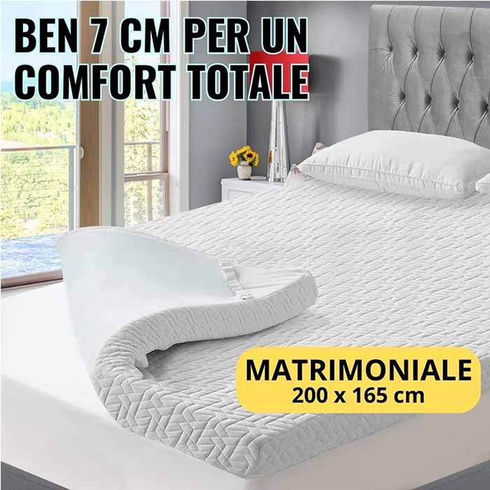 Aumenta la qualità del sonno grazie ai 7 centimetri di morbidezza e comfort. Immagina di andare a dormire senza mai più il pensiero di risvegliarti con le ossa e le articolazioni doloranti. Con questo topper in memory foam infuso a gel, ritroverai il piacere di dormire e di risvegliarti finalmente riposato.